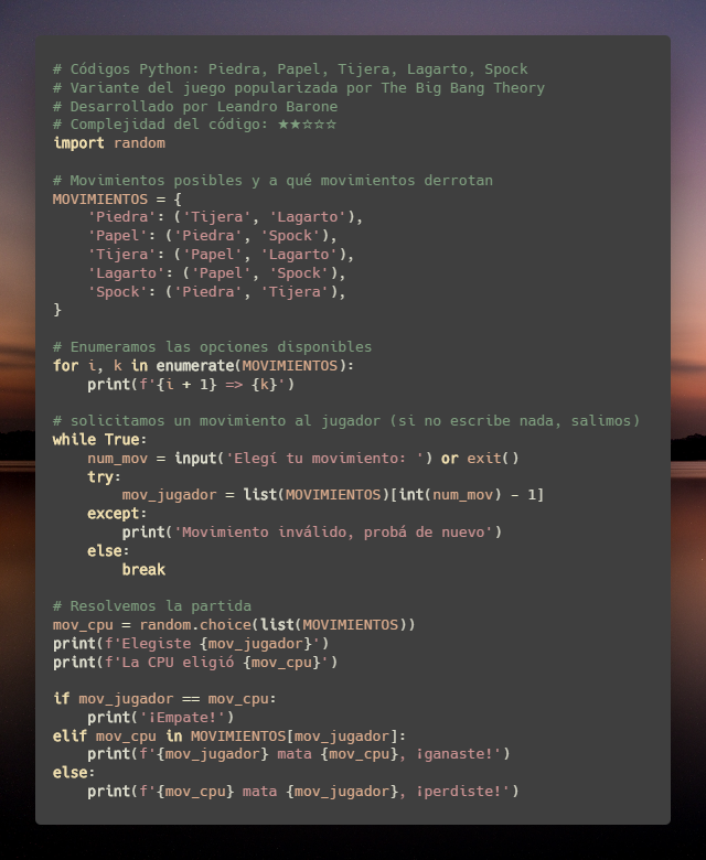 # Códigos Python: Piedra, Papel, Tijera, Lagarto, Spock