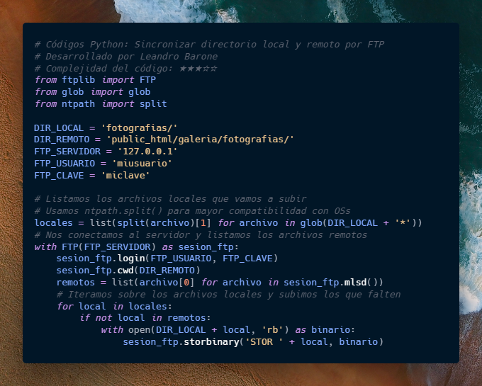 # Códigos Python: Sincronizar directorio local y remoto por FTP