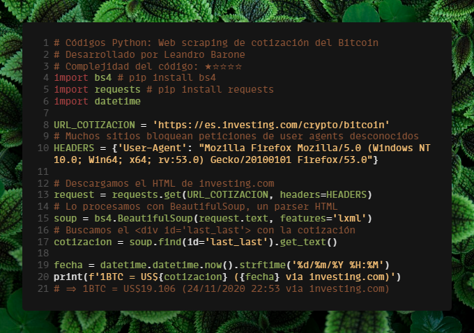 # Códigos Python: Web scraping de cotización del Bitcoin