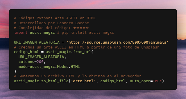 El módulo ascii_magic puede generar arte ASCII en HTML a todo color.