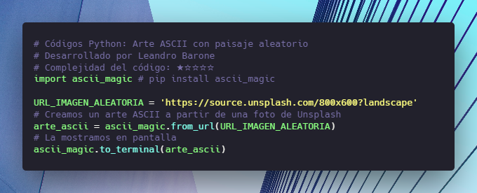 Desde chico me fascina el arte ASCII. Desarrollé el módulo ascii_magic para generar arte a color compatible con las terminales de Windows y Linux.