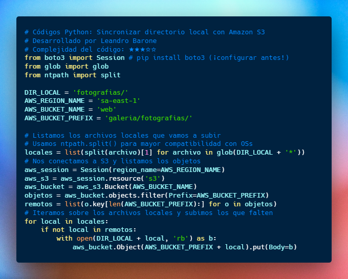 # Códigos Python: Sincronizar directorio local con Amazon S3